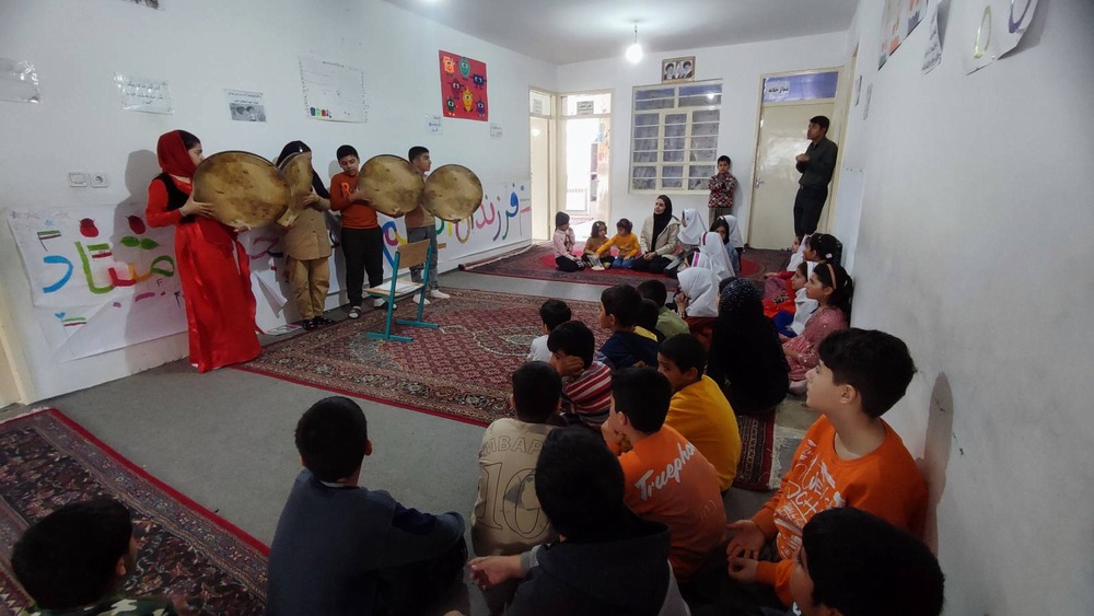 در ادامه برنامه، دانش‌آموزان با اجرای دف‌نوازی و مولودی‌خوانی، فضای معنوی و شادابی را در مدرسه ایجاد کردند و شعر «فرزندان ایرانیم» را در قالب اجرای گروهی و در راستای پویش فرهنگی اجرا کردند.